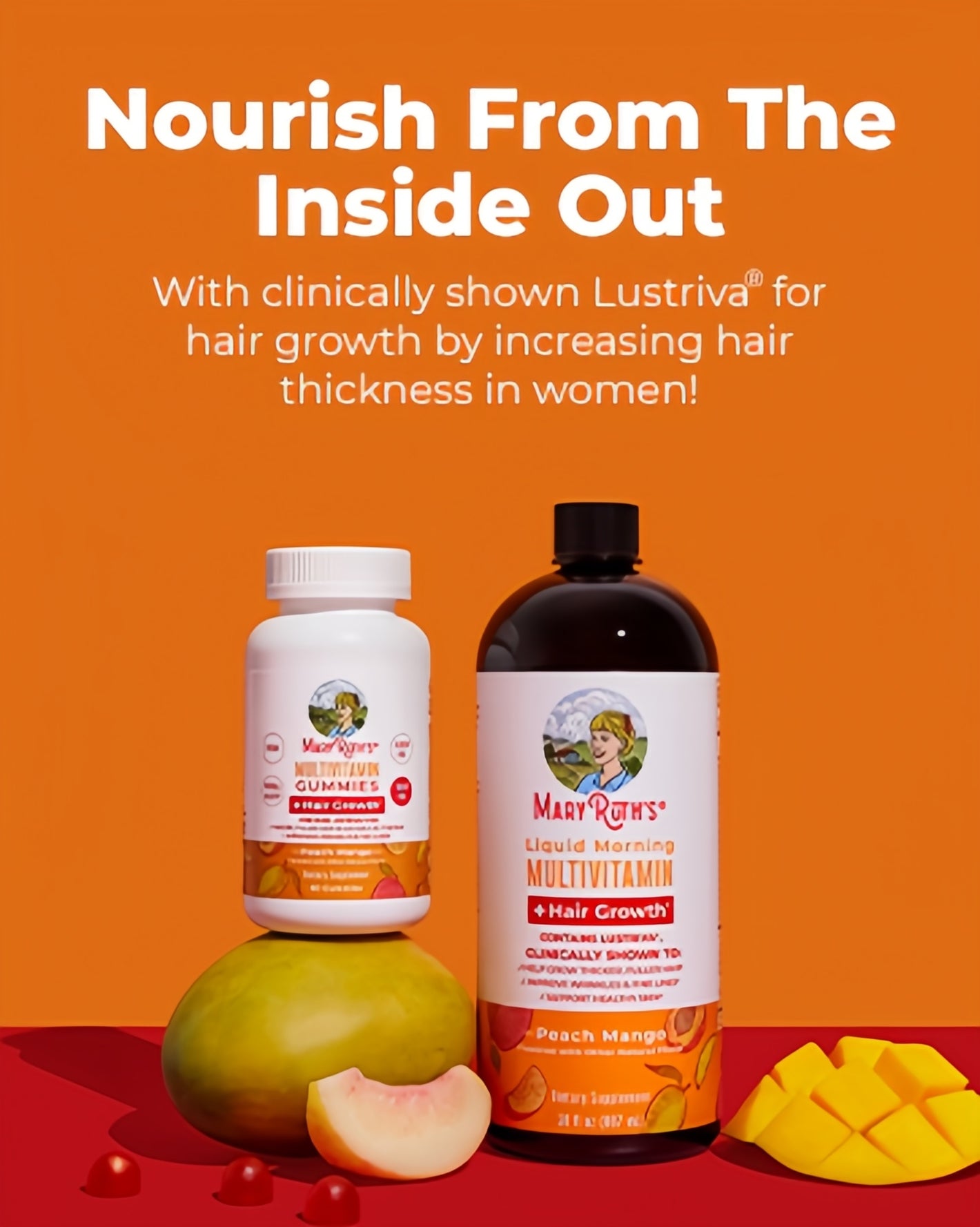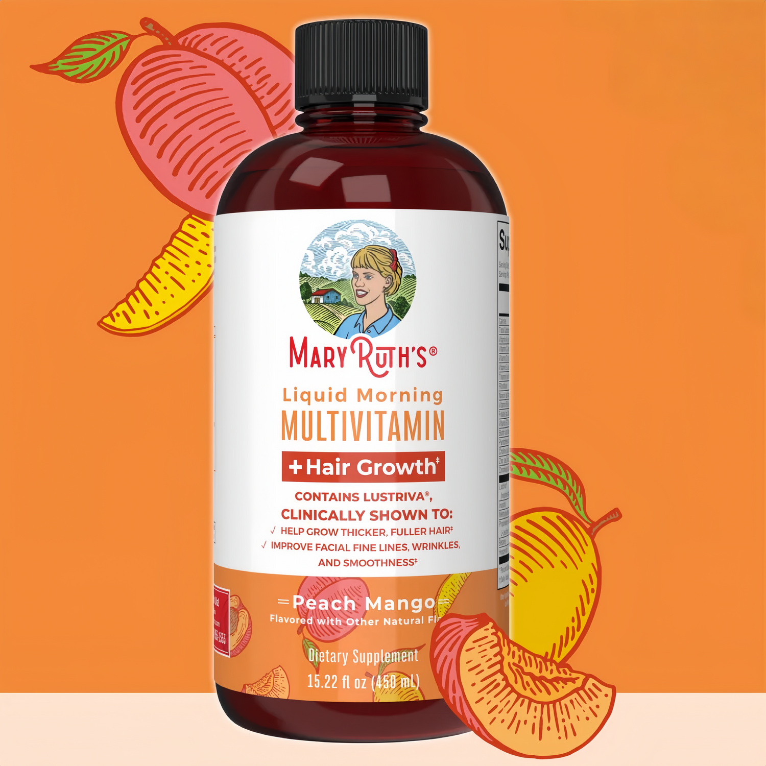 Enjoy this delicious liquid multivitamin in a peach mango or dragon fruit melon flavor and receive all of these nutrients plus Lustriva for thicker, fuller hair in women with just two tablespoons per day!